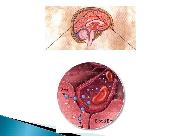 Additional issue for drugs to reach the CNS Blood brain barrier- ◦ layer of thickly packed epithelial cells and astrocytes that restrict access of many toxins/drugs to the brain