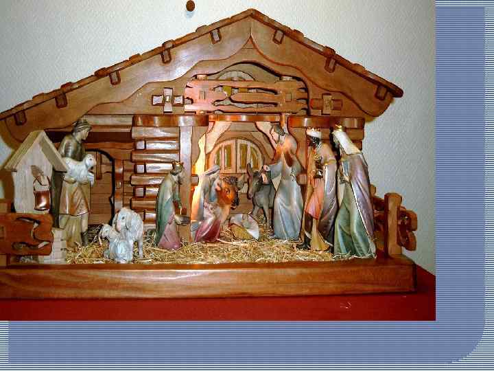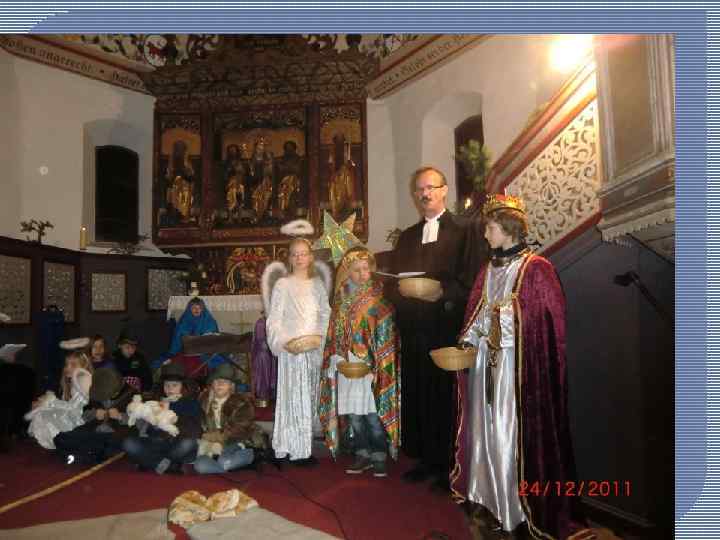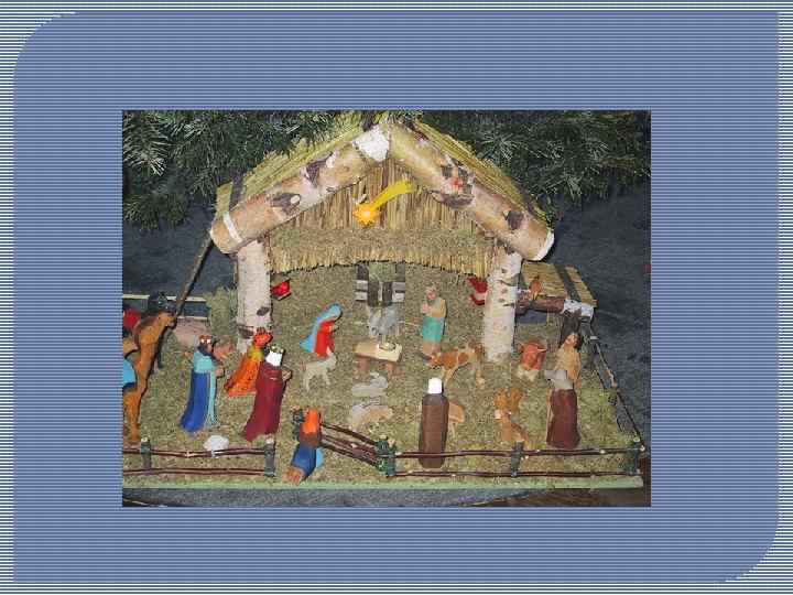 • Во время ужина произносятся добрые пожелания счастья, добра и здоровья и обмениваются подарками. После ужина принято разыгрывать библейскую сцену рождения Иисуса. Обязательные элементы представления - ясли с младенцем, Мария, Иосиф, овечки и ослики.