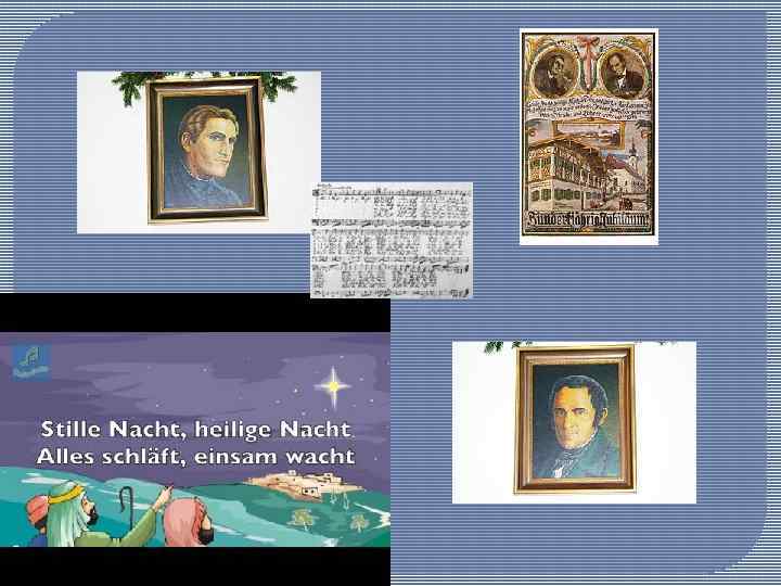 Stille Nacht, heilige Nacht! - рождественский христианский гимн, создан в 1818. Одно из самых известных и широко распространенных по всему миру рождественских песнопений. . Когда кто-то постучал к нему в дверь, Йозеф Мор, викарий церкви Святого Николая в альпийской деревушке Оберндорф, готовил проповедь к Рождественскому богослужению — был Сочельник 1818 года. В мороз, по глубокому снегу к нему пришла женщина и рассказала, что жена угольщика, самого бедного человека в деревне, родила, но она очень слаба и просит священника прийти, чтобы окрестить ребёнка. Йозеф Мор быстро собрался. . . В скромном доме на простой, кое-как сколоченной кровати лежала женщина, лицо её было юно и нежно, глаза сияли от радости и любви. Она, улыбаясь, прижимала к себе младенца, словно старалась защитить его ото всех будущих бед. Вифлеем, Иосиф и Мария, Младенец в яслях, согретый дыханием животных, — отец Йозеф словно стал свидетелем евангельской истории, которая повторялась на его глазах!. . Он окрестил дитя, благословил семью и вернулся к себе. Но сцена в доме угольщика так тронула его сердце, что на бумагу, под набросками проповеди, сами собой полились слова: Ночь тиха, ночь свята, Люди спят, даль чиста. . . Утром Йозеф Мор показал стихи Францу Груберу, деревенскому органисту и учителю пения. Тот, растроганный не меньше, сел и написал к ним мелодию, и в тот же день «Тихая ночь» прозвучала в храме. . Лишь в пещере свеча горит; Там святая чета не спит, В яслях дремлет Дитя. . . С тех пор в рождественские дни её поют на разных языках и в разных странах — и она возвращает в души мир и свет; суета и хлопоты будто растворяются в ангельском пении. Музыкальные энциклопедии даже называют эту песню «международным рождественским гимном» и ещё объясняют, что история её создания всего лишь легенда, одна из легенд. Другая, например, рассказывает так. . . В тот же морозный декабрь 1818 года отец Йозеф в отчаянии пытался придумать, как спасти Рождество: накануне обнаружилось, что мыши прогрызли мехи церковного органа. О том, чтобы послать за мастером, не могло быть и речи, а как служить праздничную мессу без музыки? . . Нужна красивая торжественная песня, которую можно исполнить а капелла! Но где найти поэта, когда до Рождества считаные часы? ! Викарию ничего не оставалось, как самому написать несколько четверостиший. Сочинить же музыку он никак не мог. . . К счастью, у Мора был друг Франц Грубер, учитель и органист, живший в соседнем городке. Скорее к нему! Рождественское чудо, которого все так ждали, пришло — на праздничной мессе под волшебную мелодию прозвучали простые, проникновенные слова. . . Ночь тиха, ночь свята, Счастья ждут все сердца. . . И с улыбкой Младенец глядит, Взгляд его о любви говорит И сияет красой. . . В 1831 году «Тихая ночь» появилась в немецких песенных сборниках с пометкой «авторы текста и музыки неизвестны» . Мы бы так и не узнали их имён, если бы не прусский король Фридрих Вильгельм IV, которому очень полюбились музыка и слова. Он дал указ разыскать авторов. Только как? ! Оба были маленькими, скромными, неприметными людьми. Поиски продолжались целый год, и если бы не рождественское чудо. . . В 1854 году хор Зальцбурга готовился к Рождеству. На репетиции директор хора отчитывал юного Феликса Грубера за неправильное исполнение песни. На что юноша ответил, что поёт так, как научил его отец, а он лучше всех з