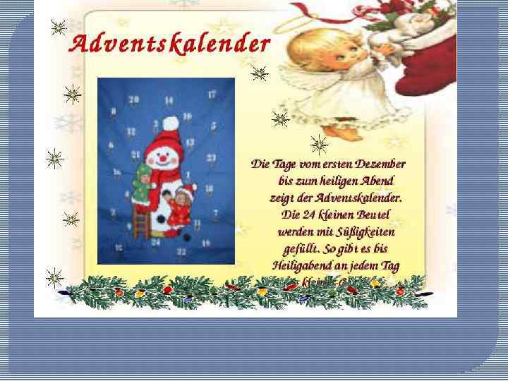 Святой вечер (der Heilige Abend) 24 декабря немецкие семьи по обычаю идут в церковь, а потом чинно садятся ужинать.