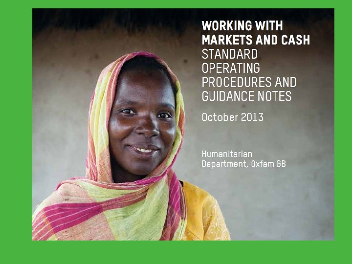 Why do we need SOPs? • Evolution of humanitarian programming: Significant increase in CTP work (2. 5% in 2009 to 20% in 2013) • Oxfam’s ambition, across sectors, as a tool of market based programming to address basic needs / right and resilience building • New area of work for many humanitarian teams / functions • Lack of cross-functional understanding of the modalities in cash & market based programming • In- Consistency in decision making, Process & Risk Management • Lack of clarity on process and roles • Initially Finance guidelines but need to clarify and detail role of other teams arose
