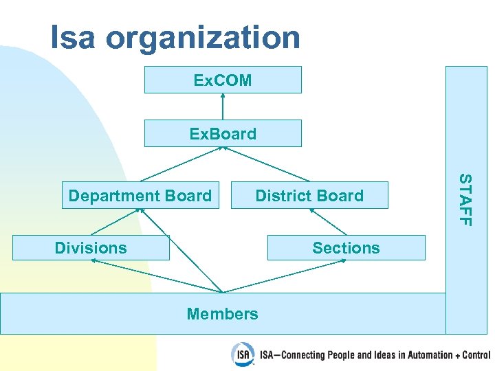 Isa organization Ex. COM Ex. Board District Board Divisions Sections Members STAFF Department Board