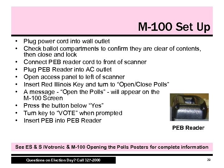 M-100 PEB Reader Plug Questions on Election Day? Call 327 -2000 27