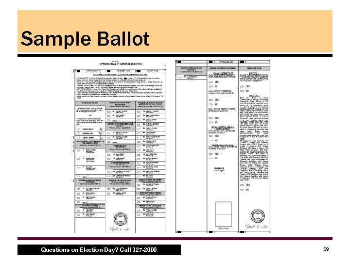 Sample Ballot Questions on Election Day? Call 327 -2000 39