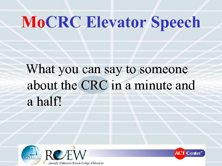Mo. CRC Elevator Speech What you can say to someone about the CRC in a minute and a half!