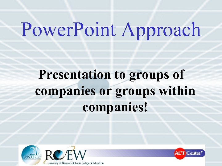 Power. Point Approach Presentation to groups of companies or groups within companies!