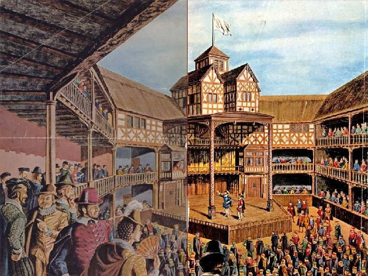 The (Globe) Theatre l l l Destroyed by fire in 1613. Rebuilt in 1614. Closed in 1642 by the Puritans. Torn down around 1644. The one you can see today was built in 1997.