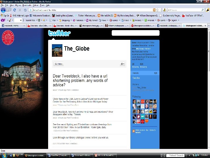 The Globe Theatre l Many of Shakespeare’s plays were performed in the now famous Globe Theatre in London, England. l The Lord Chamberlain’s Men managed theatre for years…especially one guy in particular named Burbage.