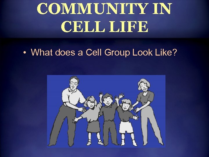 COMMUNITY IN CELL LIFE • Families never stop being family. • Family members spend time together as they “rub shoulders. ” This means they get frustrated with one another. • They work out their differences. They accept one another. They serve one another for the benefit of the whole family! • We do not have time to be the family of God if we are limited to a weekly meeting.