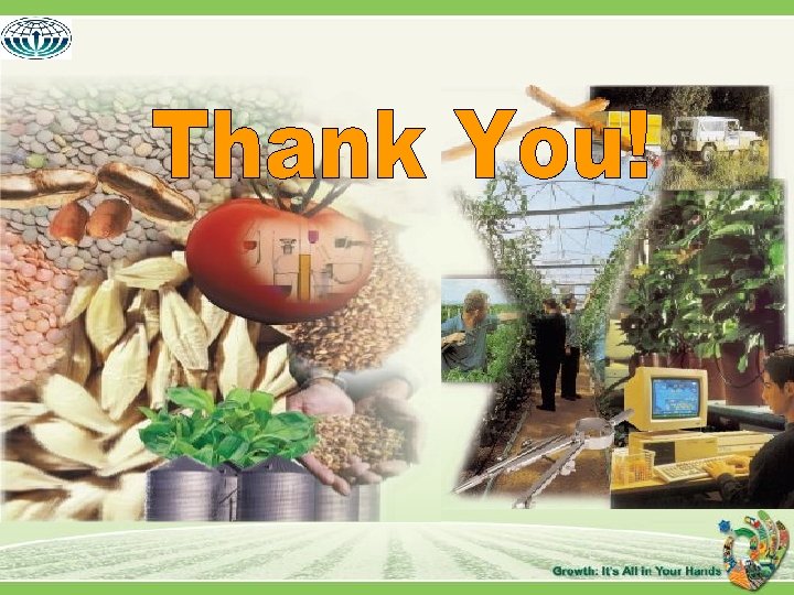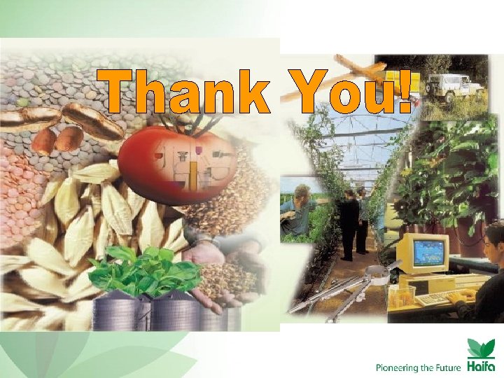Grow More With Less! The Agricultural Paradox in the past 60 years • We use 60% Less water (80% recycled). – Israel is the first to use waste water treatment for agricultural purposes. • We use Less Land. • We only use 2. 5% of working force (17% in the past). • Production has Grown by a factor of 20. Focus on super intensive agriculture!
