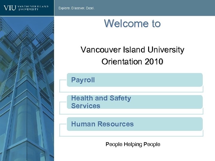 Welcome to Vancouver Island University Orientation 2010 Payroll Health and Safety Services Human Resources People Helping People