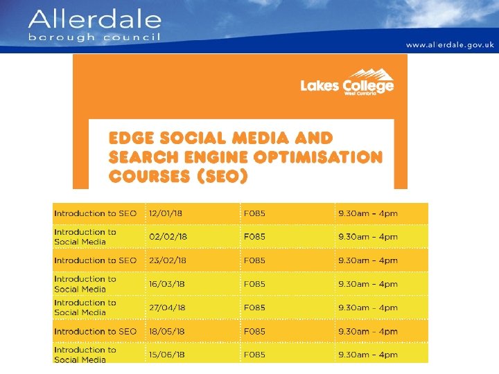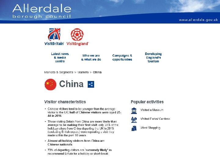 Allerdale Stats/Trends Allerdale = 16% share of Cumbria’s visitors and tourism revenues 2015 – 2016 saw an increase of: • 3. 1% tourist days • 3. 7% tourist numbers • 3. 2% tourism revenue • Jobs supported by tourism grew by 1. 3% mainly due to day visitors