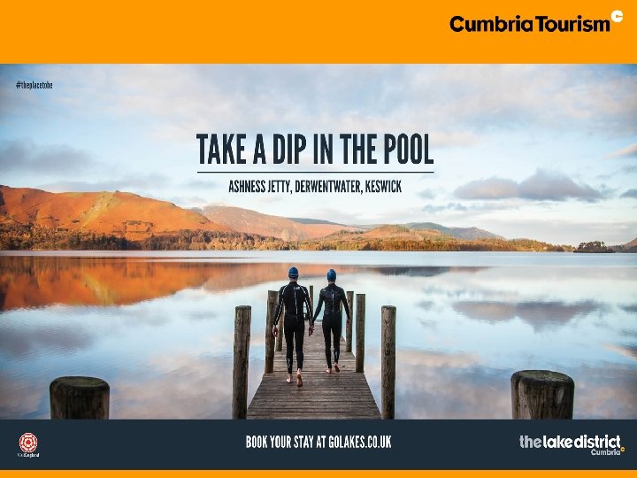 • • • Cumbria Stats/Trends £ 2. 72 billion value to Cumbria 36, 240 FTE jobs 45 m visitors - 6. 3 m overnight 4% increase - tourist days 5. 2% increase - tourist numbers 4. 1% increase - tourism revenue 86% domestic - 14% overseas Many first time visitors from younger age groups 50% increase in day visitor spend 19% increase in staying visitor spending (including accommodation) Satisfaction up Latest BSS - a good season overall but concerns about increasing costs, staff recruitment, and traffic and parking problems for visitors.