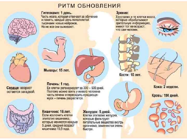 Обновление клеток кожи: В 25 лет ≈ 30 дней В 40 лет ≈ 60 дней В 55 лет ≈ 90 дней