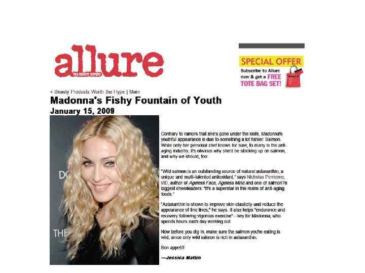 Шведский бьюти-комплекс (астаксантин) • мощный антиоксидант из одноклеточной водоросли Haematococcus pluvialis, обитающей в акватории Швеции • Исследования доказывают, что астаксантин 4 мг Астаксантин – 1 порция лосося защищает клетки от свободных радикалов • В отличие от других антиоксидантов, астаксантин защищает клеточную мембрану изнутри и снаружи. • это в 100 раз эффективнее, чем, например, активность витамина С. Астаксантин присутствует в лососевых рыбах, шпинате, зелени