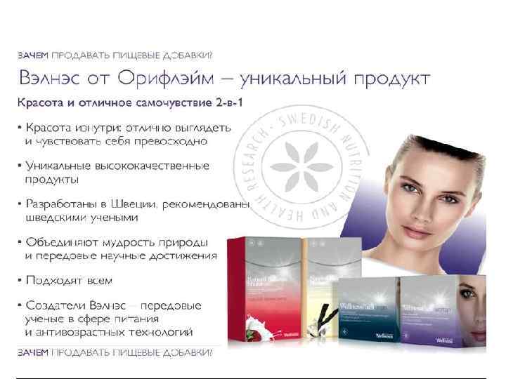 Шведский бьюти-комплекс ü Улучшает состояние кожи: • Морщины сократились – 53% • Кожа стала более эластичной – 53% • Кожа стала менее сухой – 56% ü Повышает мышечную силу и выносливость: • 13% через 3 месяца • 55% через 6 месяца
