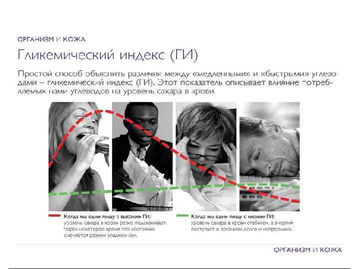 «Медленные» углеводы «Быстрые» углеводы • Цельнозлаковые продукты • Белый хлеб • Черный хлеб • Белый рис • Коричневый/дикий рис • Белый сахар • Бобовые, овощи и фрукты • Сладости и выпечка ОБРАЗ ЖИЗНИ И ПИТАНИЕ