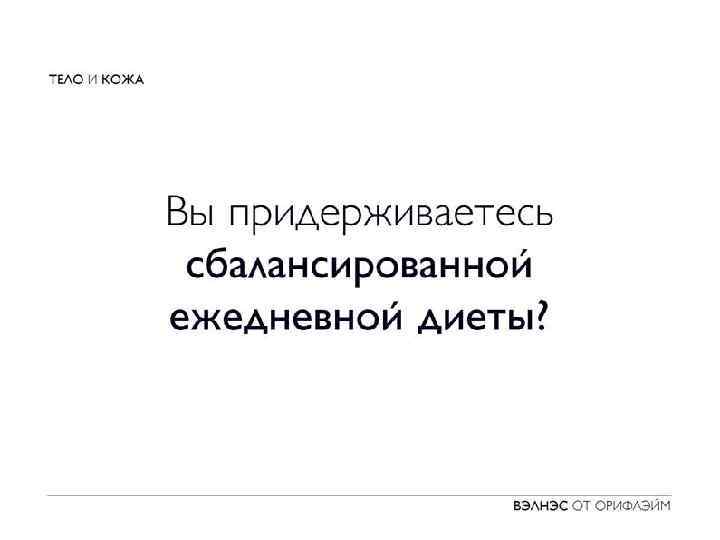 Основные показатели здоровья • • Состояние кожи Вес Энергичность по утрам и днем Качество сна Физическая форма Состояние иммунной системы Боли различного происхождения