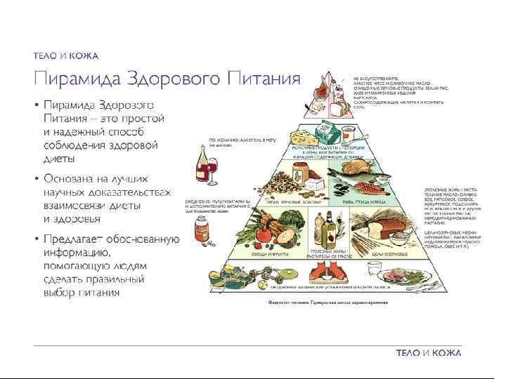 Светофор питания Основан на пирамиде питания гарвардской Школы общественного здоровья Ешьте чаще в больших количествах Ешьте чаще в умеренных количествах • Злаки и крупы (цельнозерновые хлеб и макароны, хлопья, дикий рис) • Разноцветные овощи • Фрукты • Рыба • Птица (курица) • Яйца • Морепродукты • Орехи, семена и бобовые • Обезжиренные молоко (< 0, 5% жира) и сыр (< 17% жира) • Растительные масла (оливковое, подсолнеч-ное и т. д. ) ОБРАЗ ЖИЗНИ И ПИТАНИЕ Избегайте или ешьте редко и в небольших количествах • Красное мясо • Масло, цельное молоко • Жирный сыр • Рафинированные злаки (шлифованный рис, белые хлеб и макароны) • Газированные напитки, сладости, выпечка • Соль