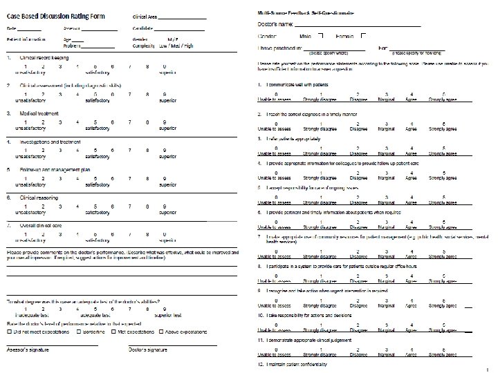 AMC Recommendations § Assessors name, title and role to be included in each assessment form § A variety of assessors to be used – not one assessor to complete all assessments § Different assessments are not to be conducted on one patient § Do not use the same case type or condition for all assessments § Other WBA candidates cannot assess for Multi Source Feedback