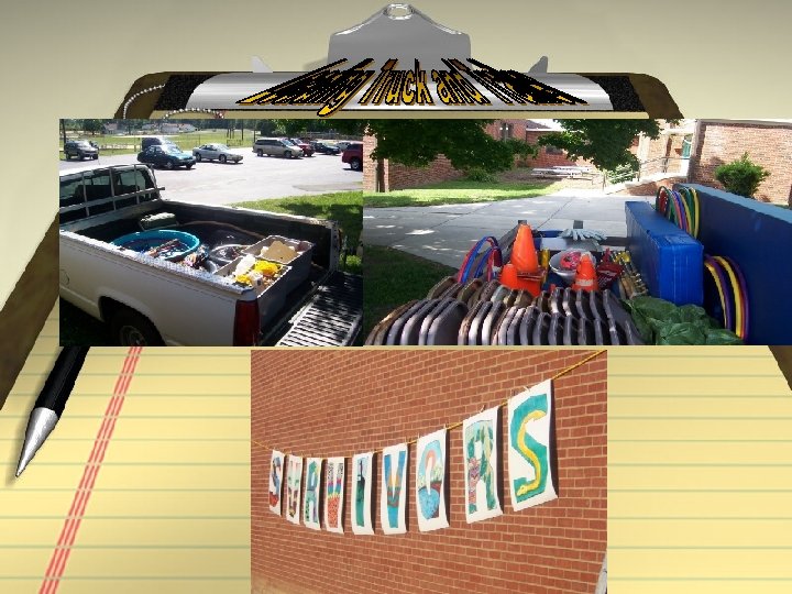 ü Try to go to bed at ü Continue to PRAY for a descent hour. good weather ü Drive the trailer to ü Hook the trailer up and load with rebarb, school the next 2 sledge hammers, day. gloves and pennant ü Don’t forget to streamers. pack a cooler with water!
