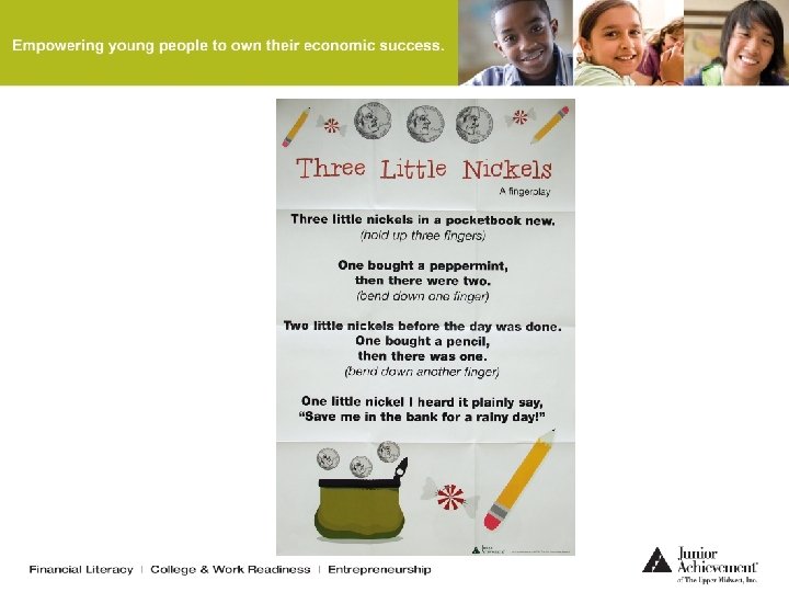 Three Little Nickels Poster How much is a nickel worth? Read and Fingerplay. How much is a quarter worth? Read and Fingerplay. What do these rhymes tell you about saving?