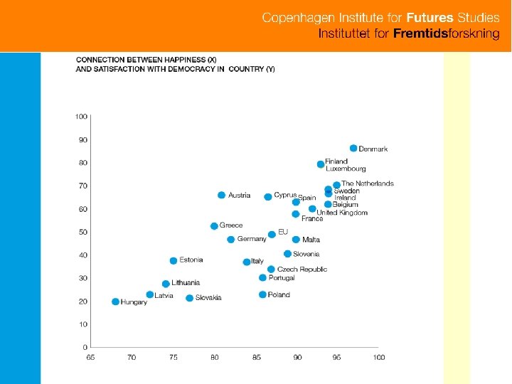 Denmark National happiness account 100 Sweden Netherlands Luxembourg 90 Belgium Finland 80 Ireland 70 60 50 Industrial mindset - Happiness
