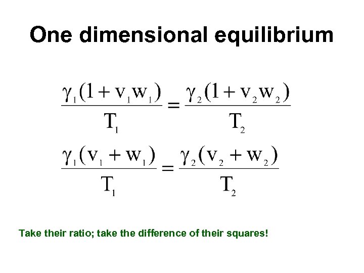 One dimensional equilibrium Take their ratio; take the difference of their squares!