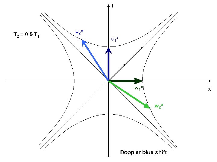 t T 2 = 0. 5 T 1 u 2 a u 1 a w 1 a x w 2 a Doppler blue-shift