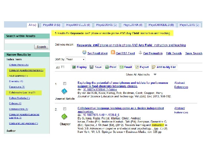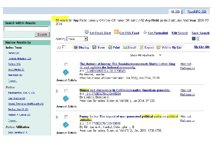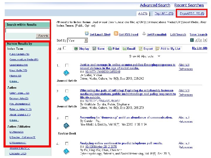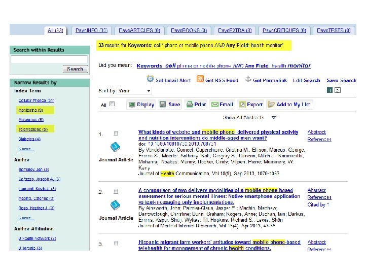 Why is Psyc. INFO an essential tool for many independent researchers? Content quality Time saving Multidisciplinary Enriched metadata People not things Precise searching Authoritative sources Results management
