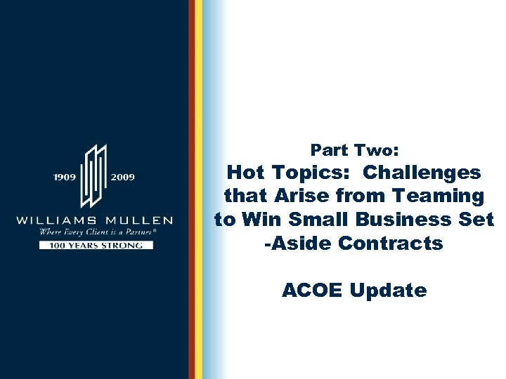 Part Two: Hot Topics: Challenges that Arise from Teaming to Win Small Business Set -Aside Contracts ACOE Update