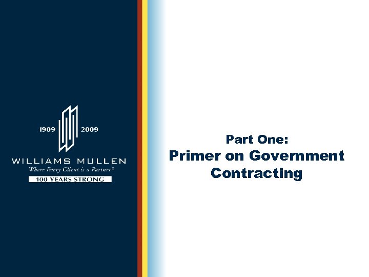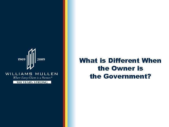 What to Expect in Government Construction Contracting August 27, 2009 Presented by: Robert E. Korroch Williams Mullen