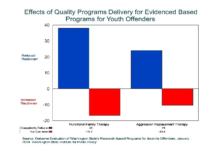 Criminal Sanctions vs. Treatment for Youthful Offenders 0. 14 Number of studies=54 Number of studies=175 0. 12 0. 1 0. 08 0. 06 0. 04 0. 02 0 -0. 02 -0. 04 Yes Criminal Sanctions -0. 02 Treatment 0. 13 Source: Dowden and Andrews (1999), What Works in Young Offender Treatment: A Meta Analysis. Forum on Correctional Research.