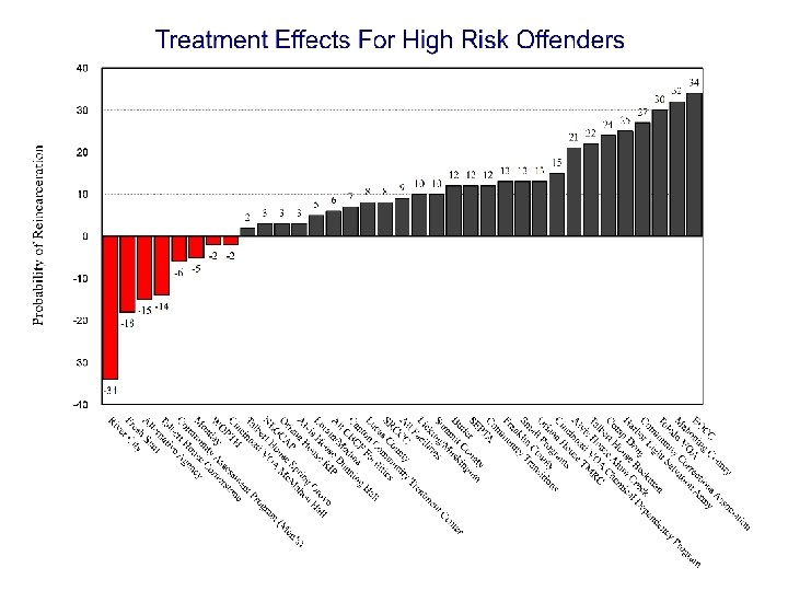 Results from Meta Analysis: Criminal Sanctions versus Treatment Mean Phi Reduced Recidivism 0. 15 Increased Recidivism -0. 07 CS -. 07 (Number of Studies=30) Treatment. 15 (Number of Studies=124)