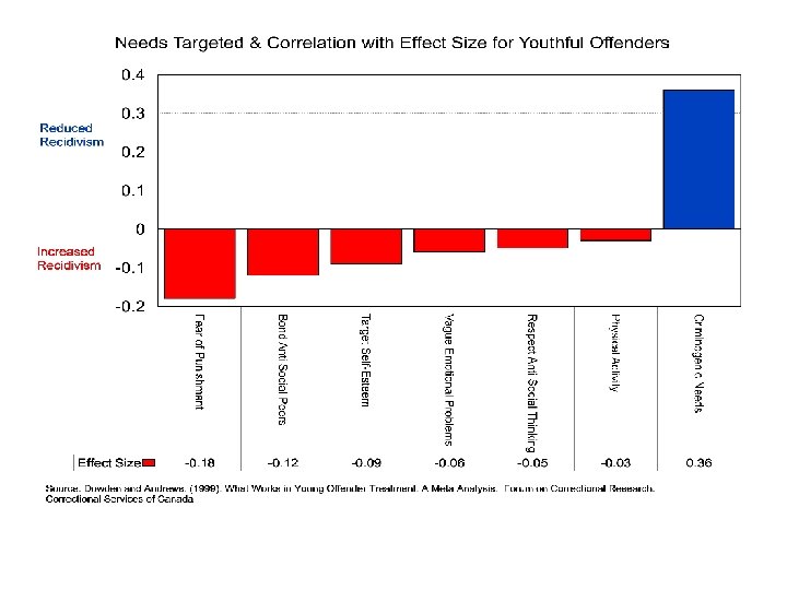 Targeting Criminogenic Need: Results from Meta. Analyses Reduction in Recidivism Increase in Recidivism Source: Gendreau, P. , French, S. A. , and A. Taylor (2002). What Works (What Doesn’t Work) Revised 2002. Invited Submission to the International Community Corrections Association Monograph Series Project