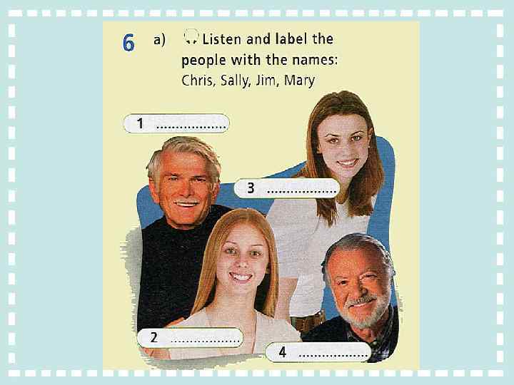 Listen and write the people’s names Angela, Gaby, Kim, Penny, Pippa, Tom: Kim Penny Tom Angela Pippa Gaby