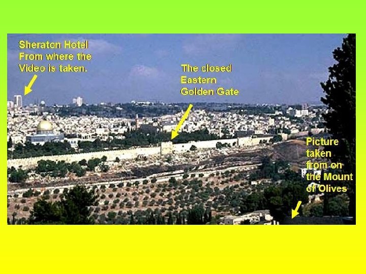 Prophecies about the East Gate • Ezekiel 44: 1 -3 1 Then he brought me back to the outer gate of the sanctuary, which faces east; and it was shut. 2 And he said to me, "This gate shall remain shut; it shall not be opened, and no one shall enter by it; for the LORD, the God of Israel, has entered by it; therefore it shall remain shut. 3 Only the prince may sit in it to eat bread before the LORD; he shall enter by way of the vestibule of the gate, and shall go out by the same way. " • The "Golden Gate" was located in the East wall of Jerusalem; it was one of eleven entrance gates into the city. Notice in the below picture that this gate is sealed shut. It was sealed up in the 16 th century A. D. • The East gate was walled up by the Ottoman Turks in 1530 A. D. Notice also the cemetery that has been planted in front of it. Many believe this was done to prevent the entrance of the Jewish Messiah through that gate as was foretold by known Old Testament prophecies. However, Ezekiel prophesied the shutting of this gate itself around 600 B. C. -- that it would be shut "because the LORD (Jehovah or Yahweh), the God of Israel, hath entered in
