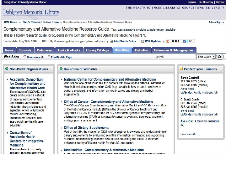 Educational Initiative in CAM at Georgetown U School of Medicine Goals for Implementation n Knowledge about CAM n Skills and Attitudes about CAM n Enhancing the Research Environment in CAM