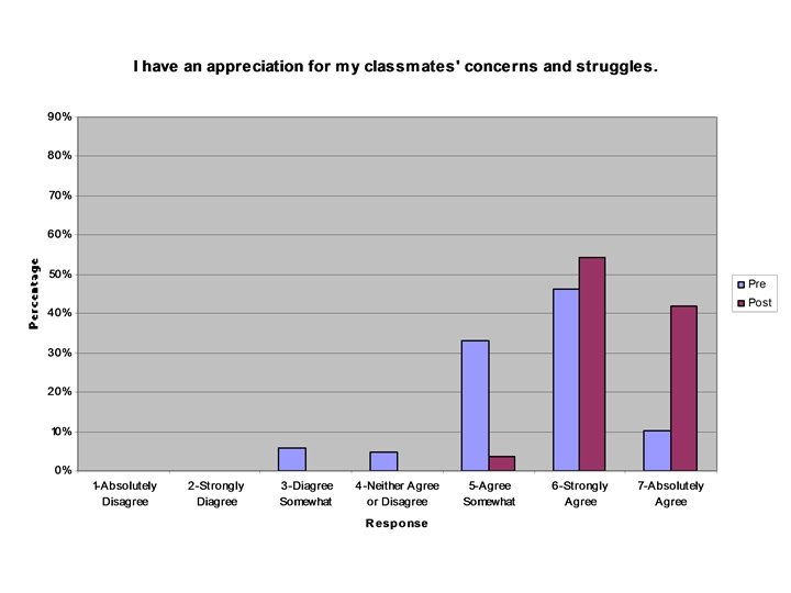 Specific Theme n Attitudes – In response to Question 5 – “Has it (this course) changed your attitude toward medical school? If so, how” n n “It has changed my attitude toward Georgetown since they are willing to offer this course to their students. ” “It has changed my attitude in the sense of knowing that there are people who care about my well-being as a student. And because I have received, I also want to give back. ”