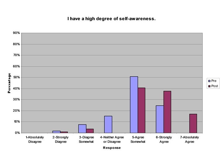 Examples – Self Discovery “I feel that I have reached new levels of understanding myself, and in that vein I am painfully aware of the giant disconnect between my intentions and feelings and my actions. So, in that way, I can see more clearly what I need to do in my life. ” n “Encouraged me to make my physical and mental health priorities. ”