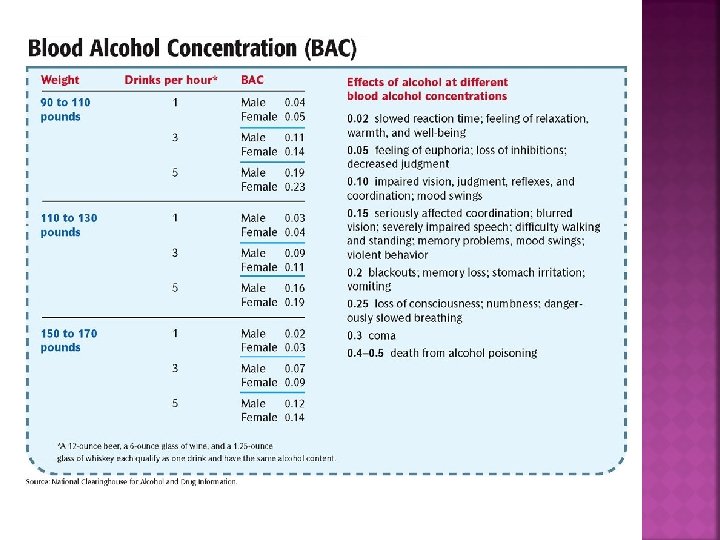 WHAT ARE SOME OF THE RISK FACTORS FOR BECOMING AN ALCOHOLIC? Age – teens that start drinking before 15 are more likely to become alcoholics than those who wait to 21 Social Environment – peer pressure, advertising Genetics – 25% of males with an alcoholic parent become alcoholics. Teens with nonalcoholic parents have a 7 -9% chance of becoming alcoholics Risk Taking Personality – impulsive, novelty, enjoy taking risks