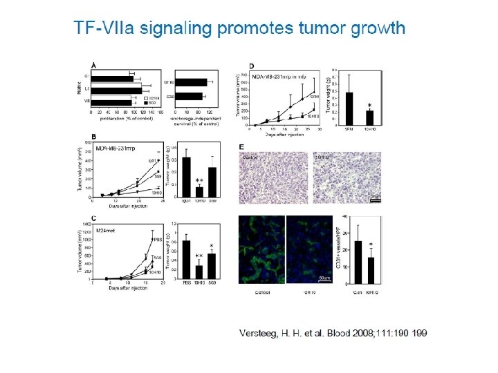 Possible roles of TF activity in cancer • initiation of a hypercoagulable state and thrombosis • primary tumor growth – angiogenesis • secondary tumor spread - metastasis