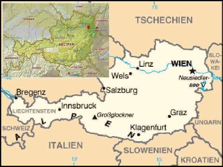 Wien ist Bundeshauptstadt und Bundesland zugleich. Die Stadt liegt im Osten des Bundesgebietes. Prunkvolle Baudenkmäler, Museen und Galerien mit einmaligen Kunstschätzen zeugen von der großen Vergangenheit der Stadt , , an der blauen Donau".