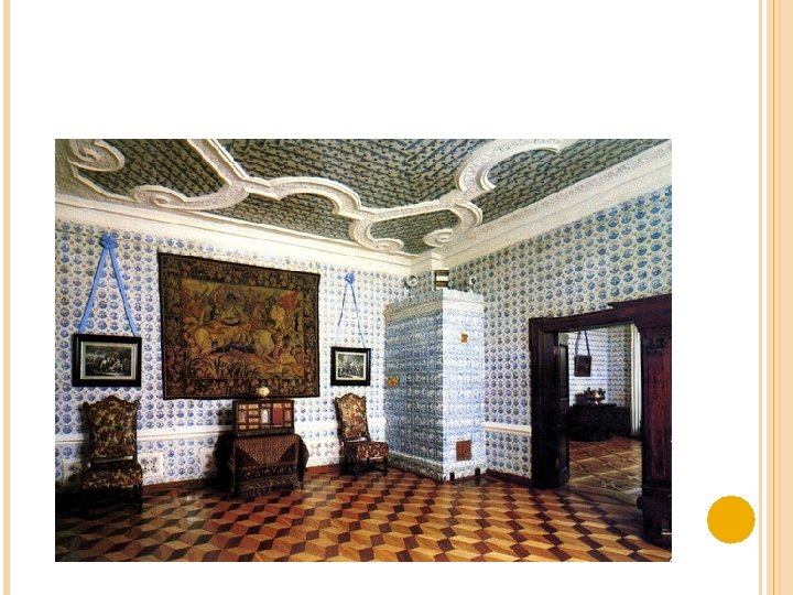 3/19/2018 Eliza Małek Rosjanie przyzwyczajeni do budownictwa drewnianego, w którym byli mistrzami, z trudem oswajali się z kamienną architekturą, dlatego wewnętrzne ściany i sufity murowanych domów zazwyczaj tynkowano, a w bogatych domach obciągano wzorzystymi tkaninami lub wykładano drewnem. Piece, a czasem i całe ściany, np. niektóre komnaty pałacu Mienszykowa i Pałacu Letniego Piotra I, wykładano też holenderskimi niebiesko-białymi kafelkami. Nowością były także duże okna, a w wystroju pokojów mieszkalnych obrazy (a nie – jak dotychczas – ikony!!!) i lustra wieszane na ścianach, parkiety, europejskie meble i zastawa stołowa. Domy ogrzewano piecami, czasem wydzielając w nich letnią i zimową (ogrzewaną) stronę. 22