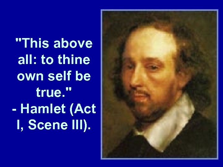 "This above all: to thine own self be true. " - Hamlet (Act I, Scene III).