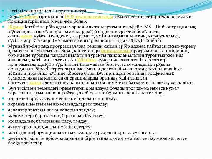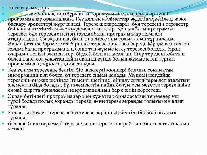 WINDOWS XP-ДІҢ НЕГІЗГІ ҰҒЫМДАРЫ. БАС МӘЗІРДІҢ ПАЙДАЛАНУЫ