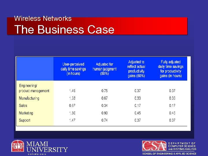 Wireless Networks The Business Case MIAMI UNIVERSITY O X F O R D O H I O DEPARTMENT OF COMPUTER SCIENCE AND SYSTEMS ANALYSIS SCHOOL OF ENGINEERING & APPLIED SCIENCE