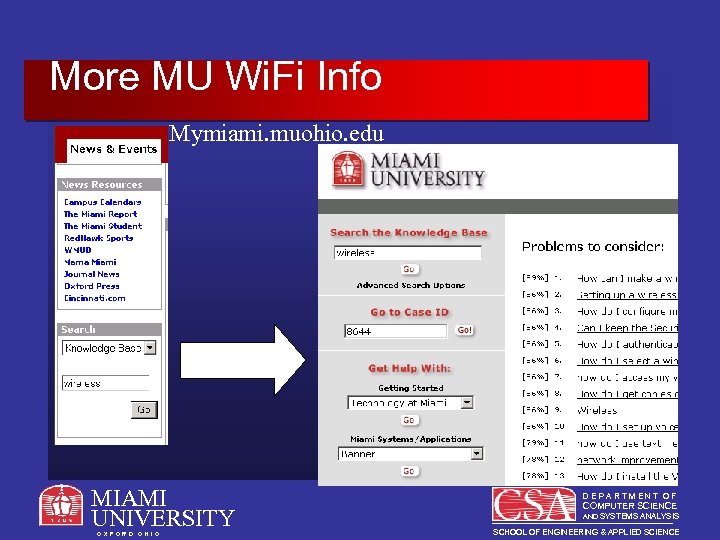 More MU Wi. Fi Info Mymiami. muohio. edu MIAMI UNIVERSITY O X F O R D O H I O DEPARTMENT OF COMPUTER SCIENCE AND SYSTEMS ANALYSIS SCHOOL OF ENGINEERING & APPLIED SCIENCE