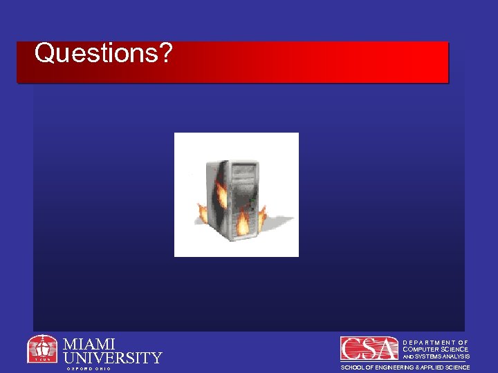 Questions? MIAMI UNIVERSITY O X F O R D O H I O DEPARTMENT OF COMPUTER SCIENCE AND SYSTEMS ANALYSIS SCHOOL OF ENGINEERING & APPLIED SCIENCE