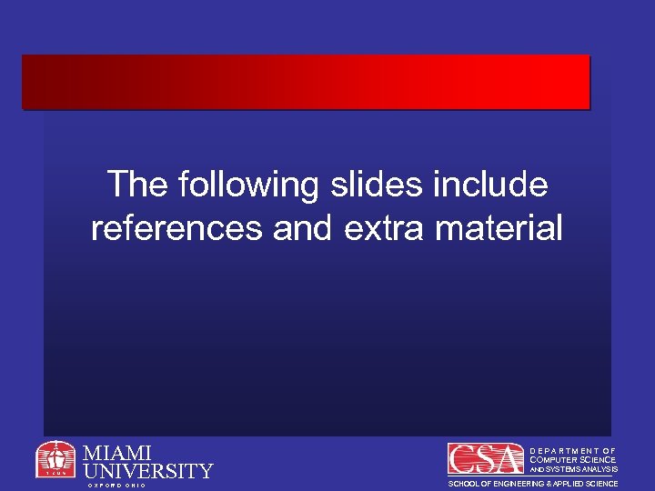 The following slides include references and extra material MIAMI UNIVERSITY O X F O R D O H I O DEPARTMENT OF COMPUTER SCIENCE AND SYSTEMS ANALYSIS SCHOOL OF ENGINEERING & APPLIED SCIENCE